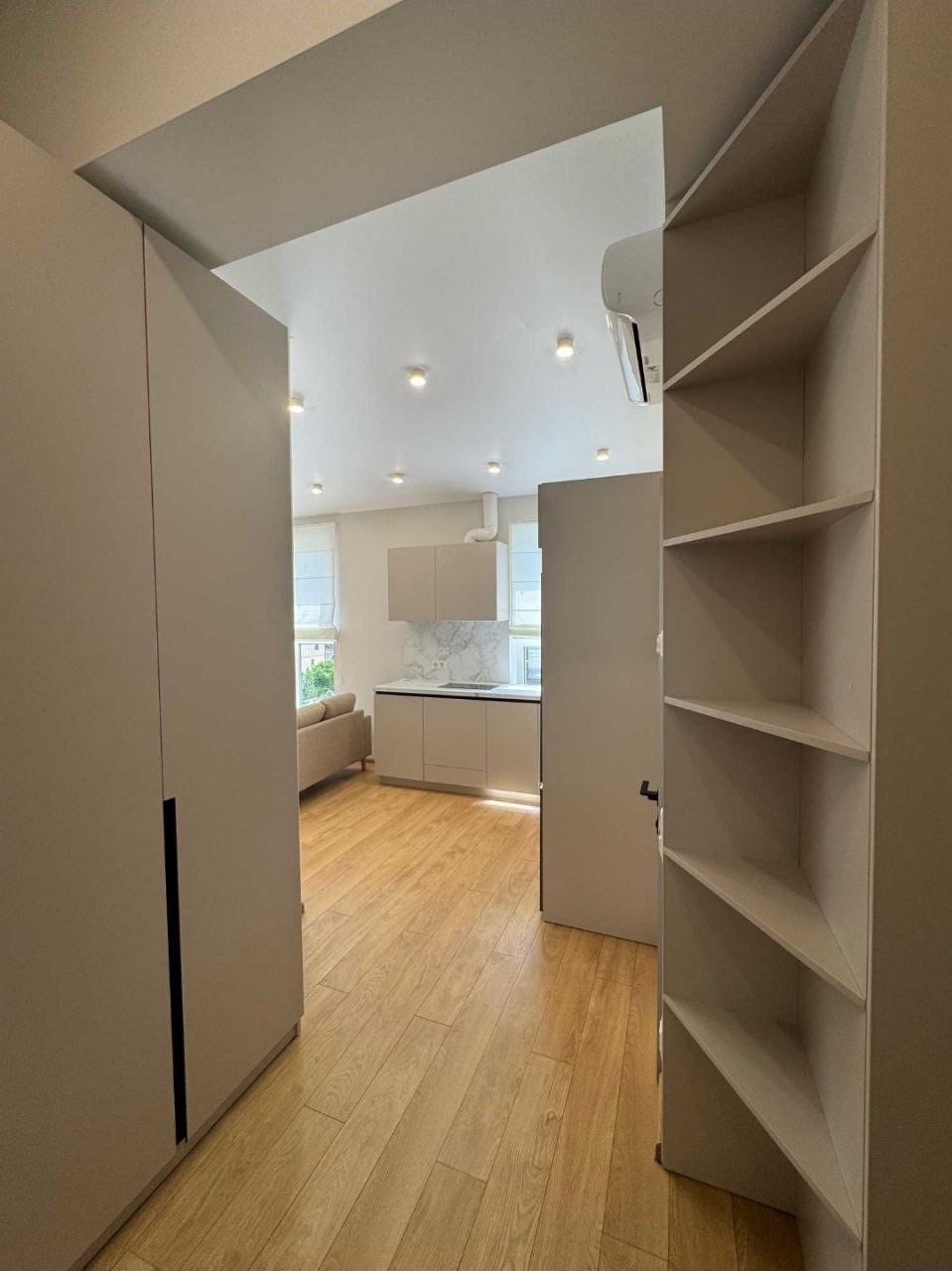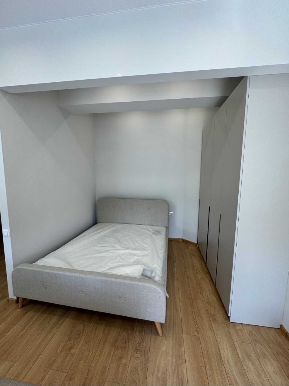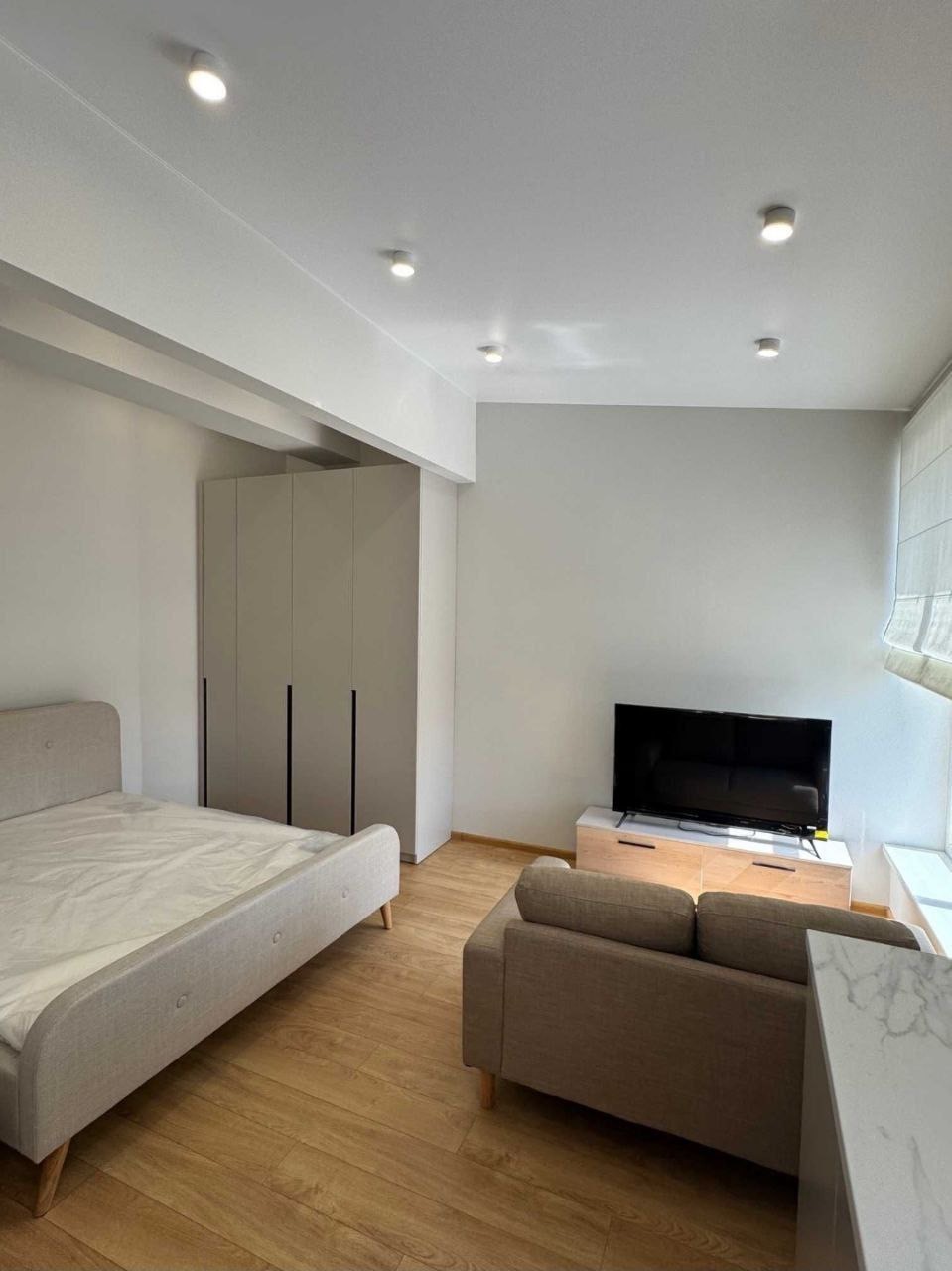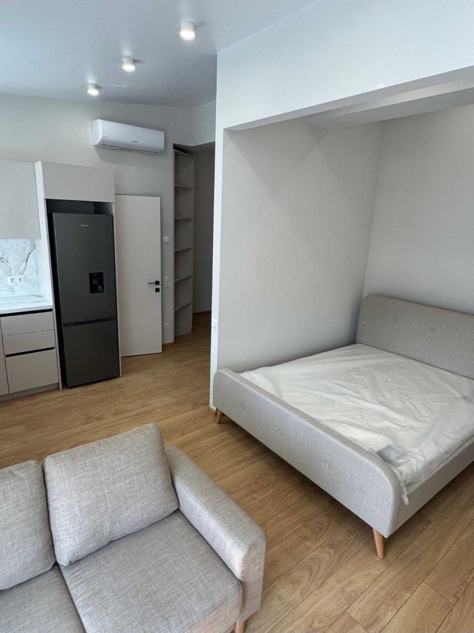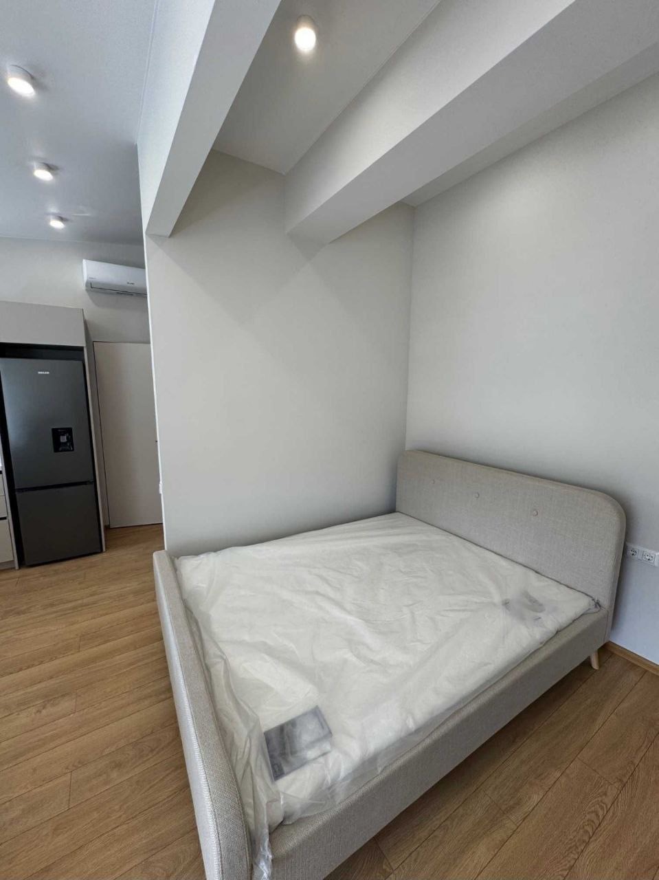 Планировка: кухня-студия, кровать с нише, с/у.