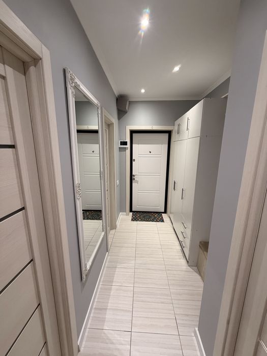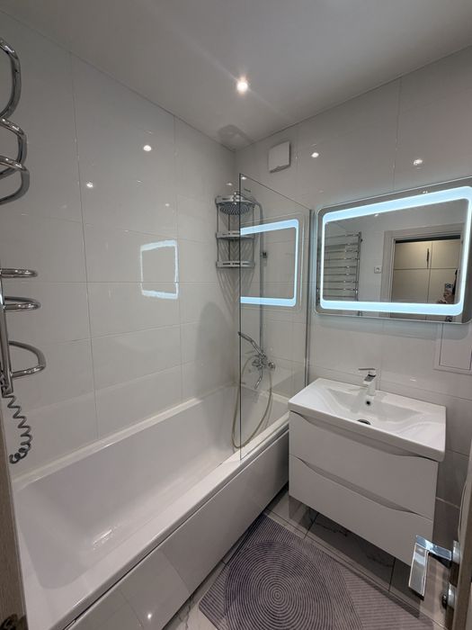 В квартире установлен мощный инвертор с аккумуляторами, двухконтурный газовый котёл с терморегулятором, водяной тёплый пол. Есть кондиционеры, телевизоры, стирально-сушильная машина, необходимая бытовая техника и система очистки воды. Много мест для хранения. Проведён скоростной интернет. Квартира от первого владельца, выполнен свежий косметический ремонт.