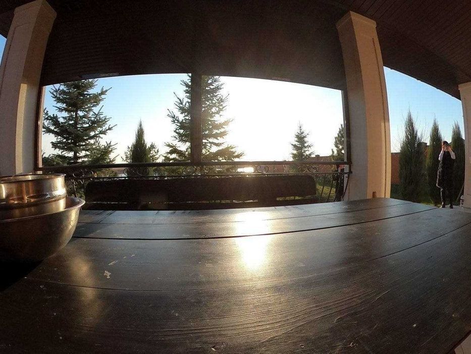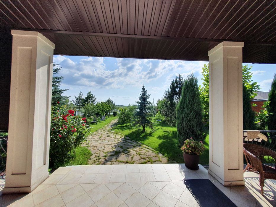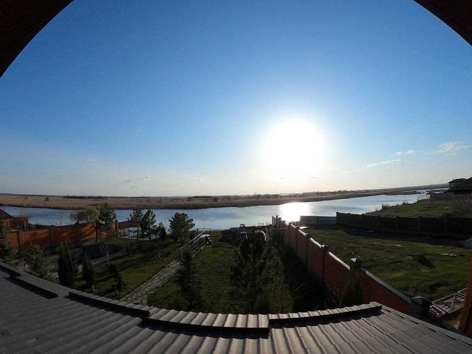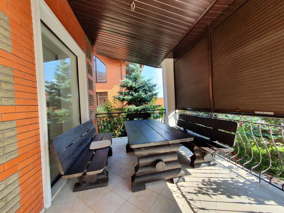 — огромная терраса с мебелью и видом на реку