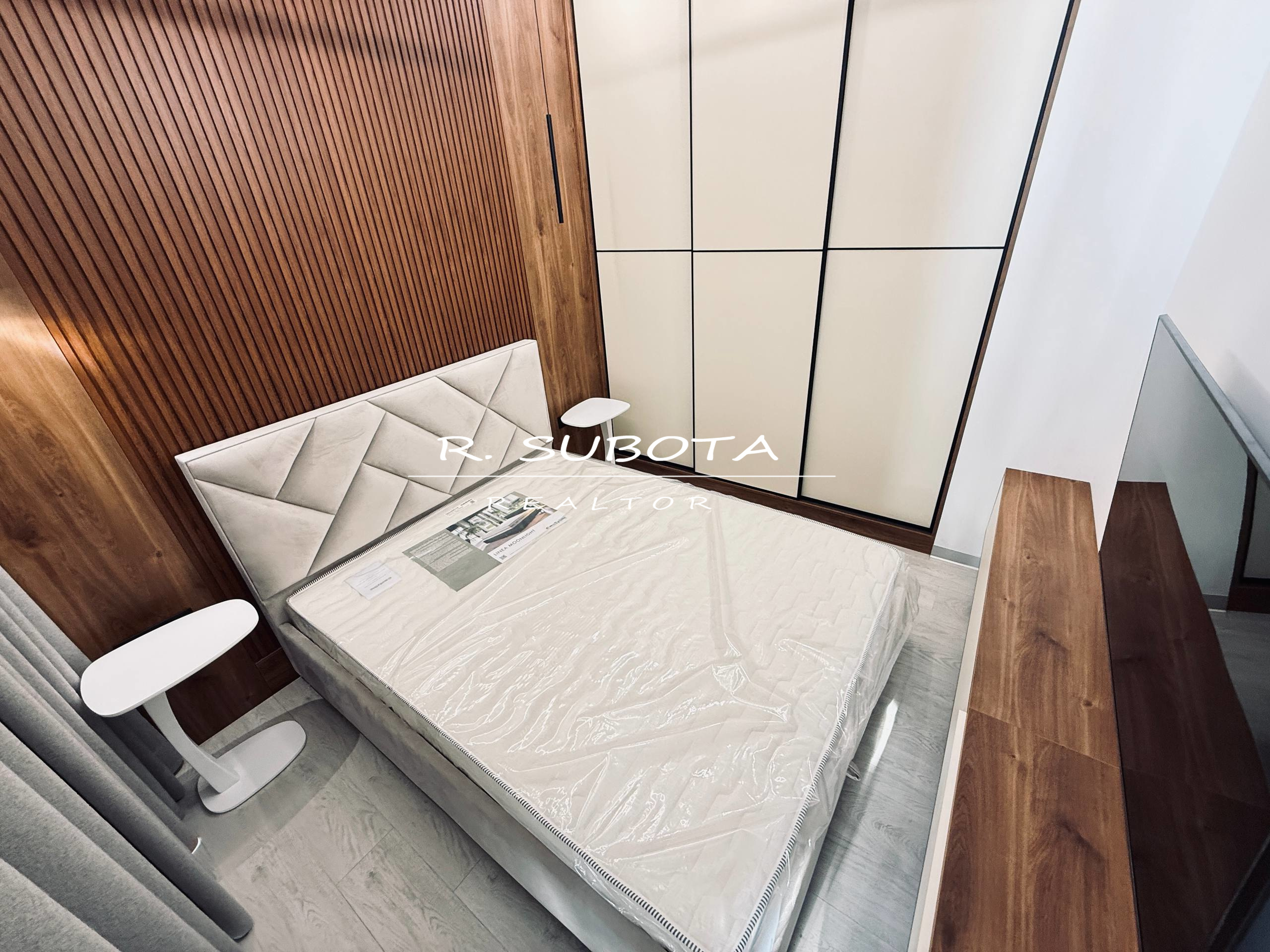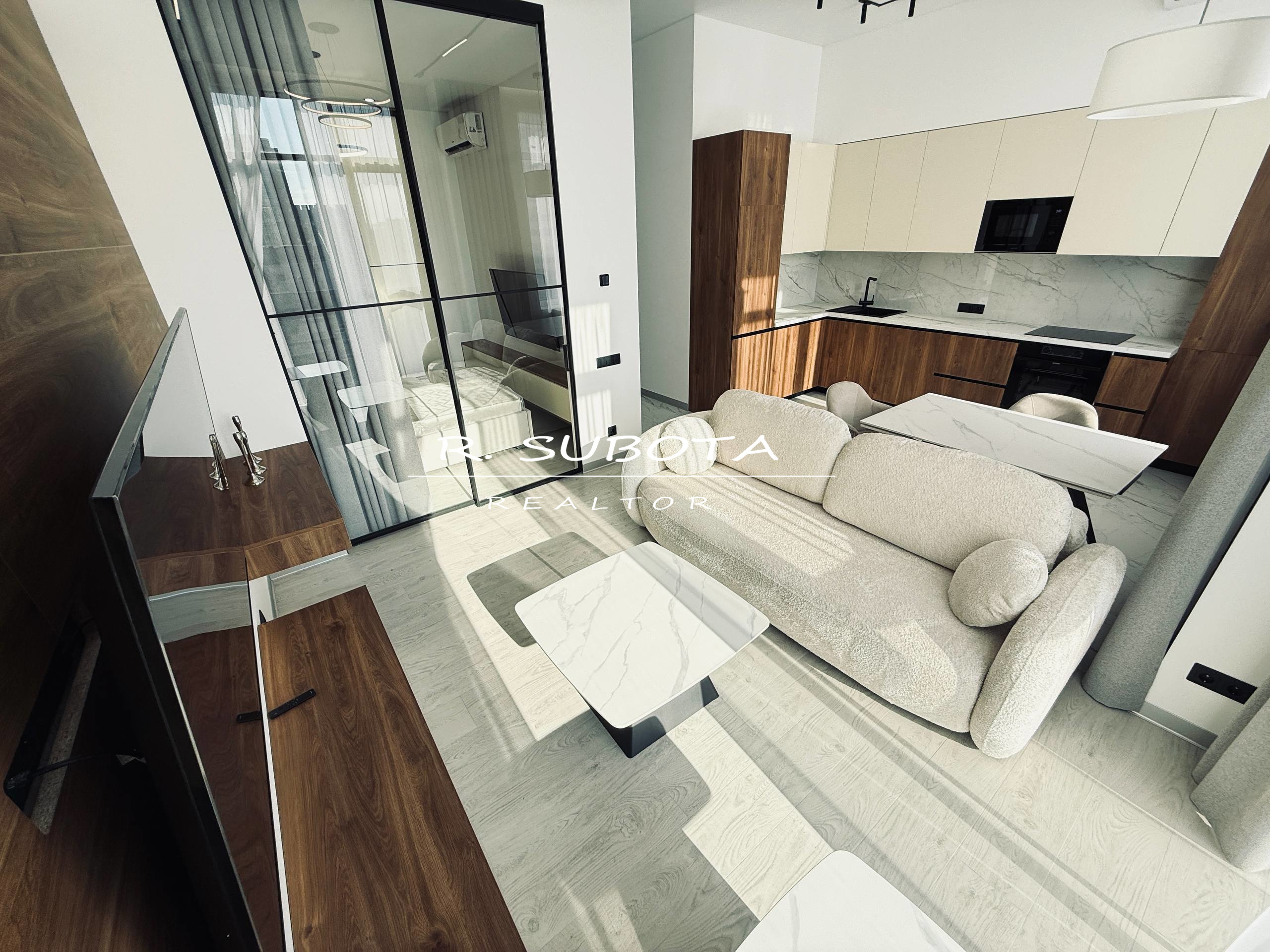 Планировка: кухня-студия, спальня, гардероб и просторный с/у