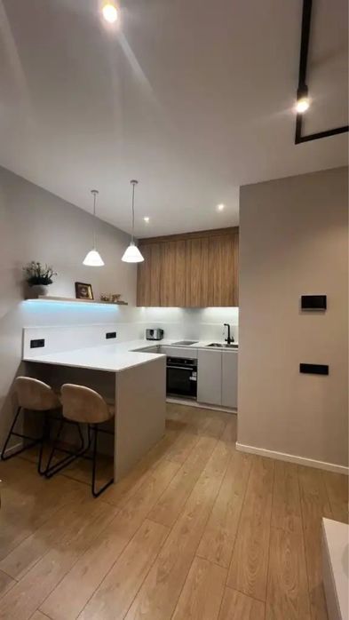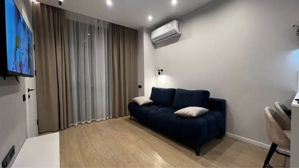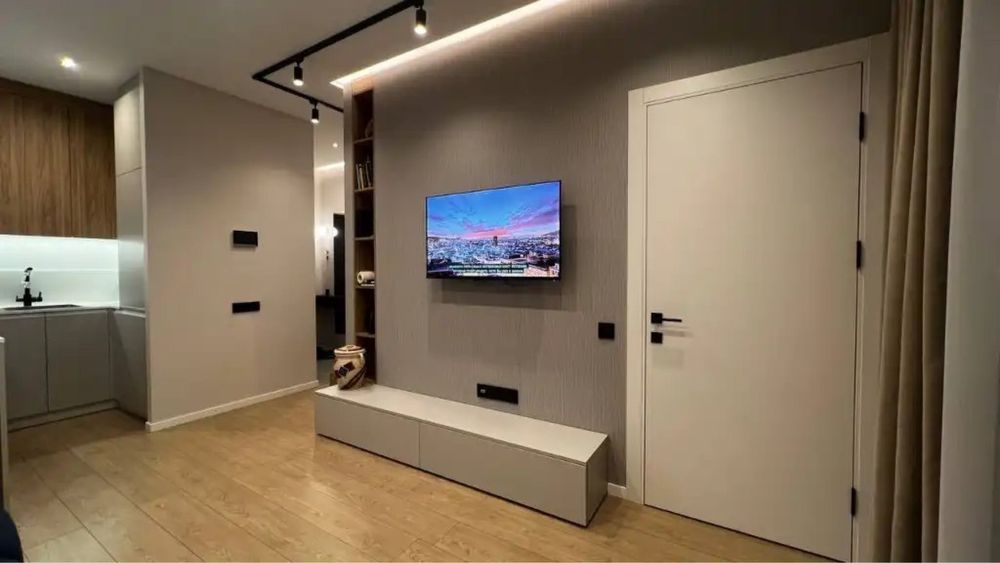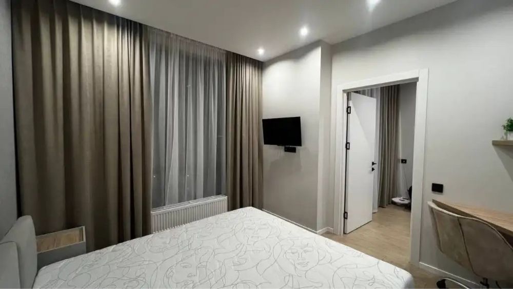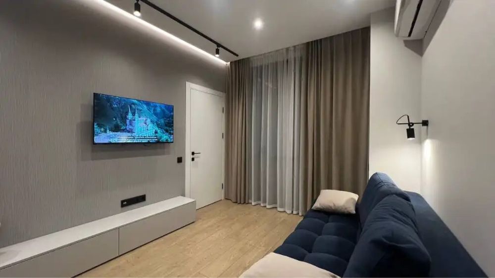 В квартире ремонт 2025 года, укомплектована всей необходимой мебелью и техникой от ведущих мировых производителей. Восточная сторона, вид на центр и реку Днепр.