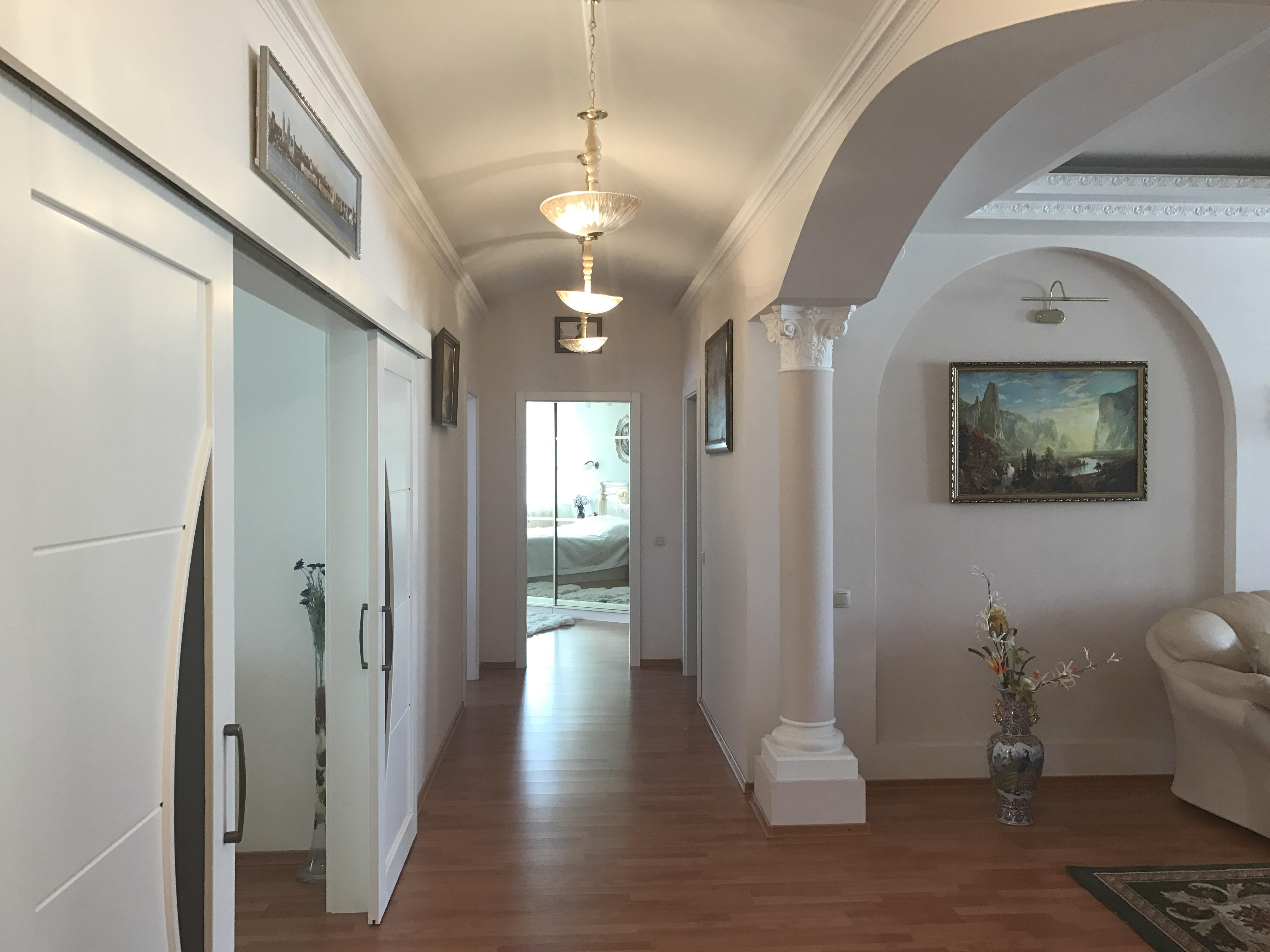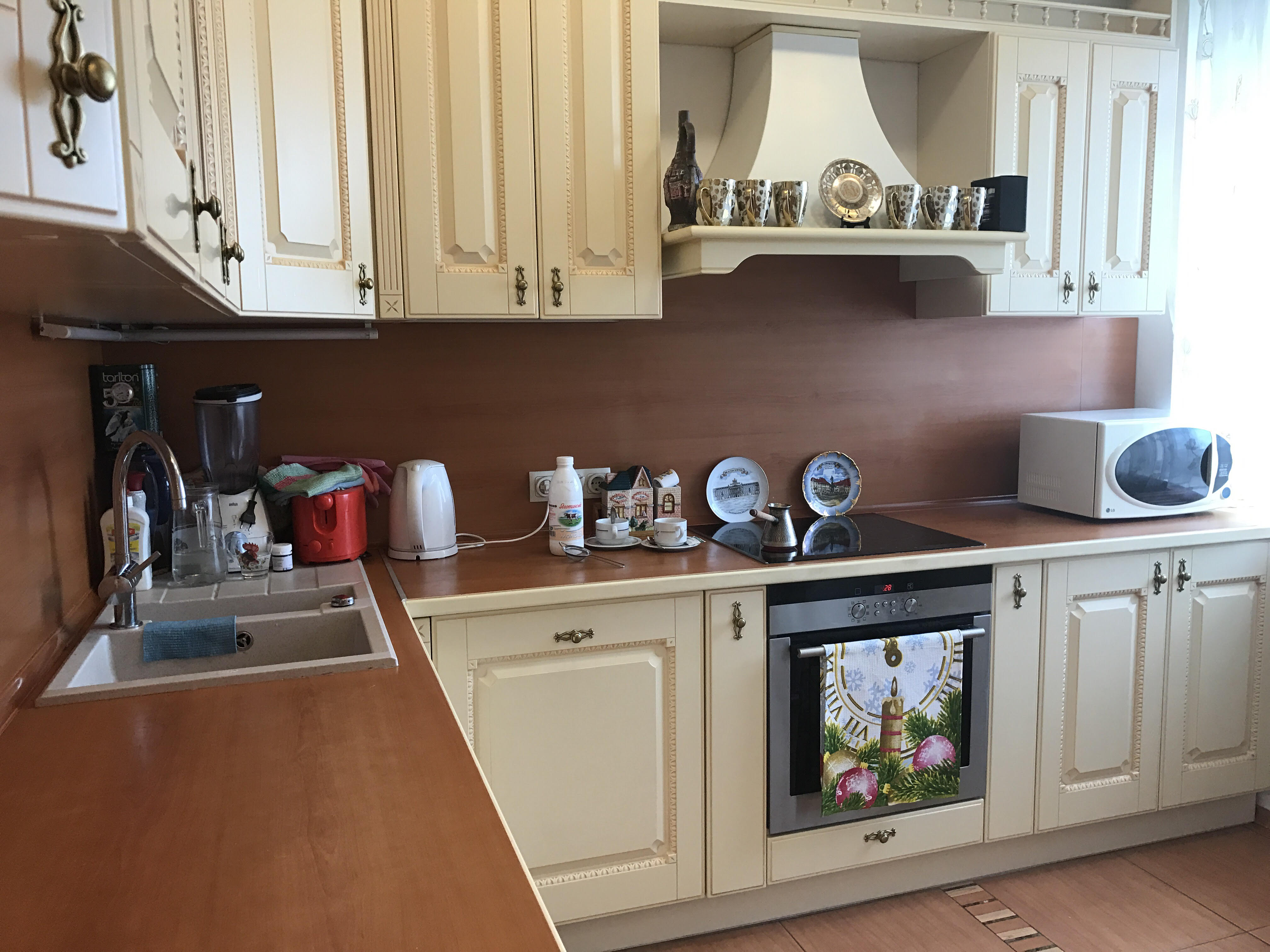 Ремонт выполнен в светлой цветовой гамме из дорогих качественных материалов, мебель и техника в идеальном состоянии.