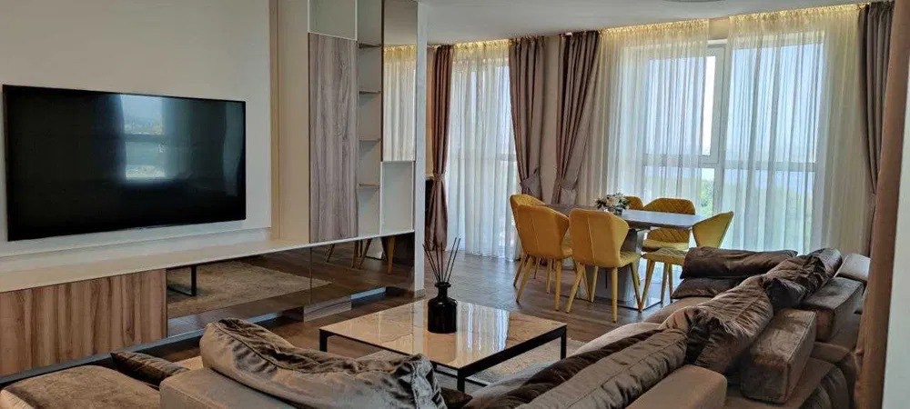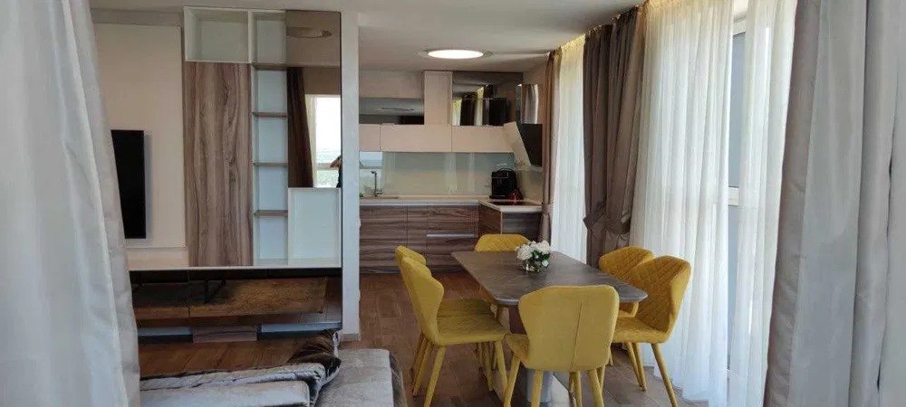 Просторная: кухня-студия, плюс две спальни, две ванные комнаты с душевой кабиной, балкон. Квартира полностью укомплектована всей необходимой для проживания техникой и мебелью.