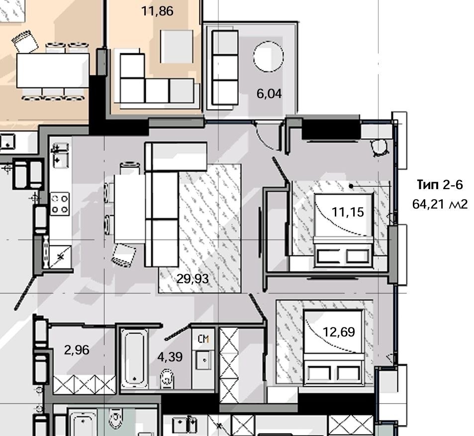 Уникальность данного типа квартиры так же заключается в том , что данные квартиры были выкуплены за первые пару дней на старте продаж на фундаменте и за всю историю дома ни разу такая квартира не продавалась !