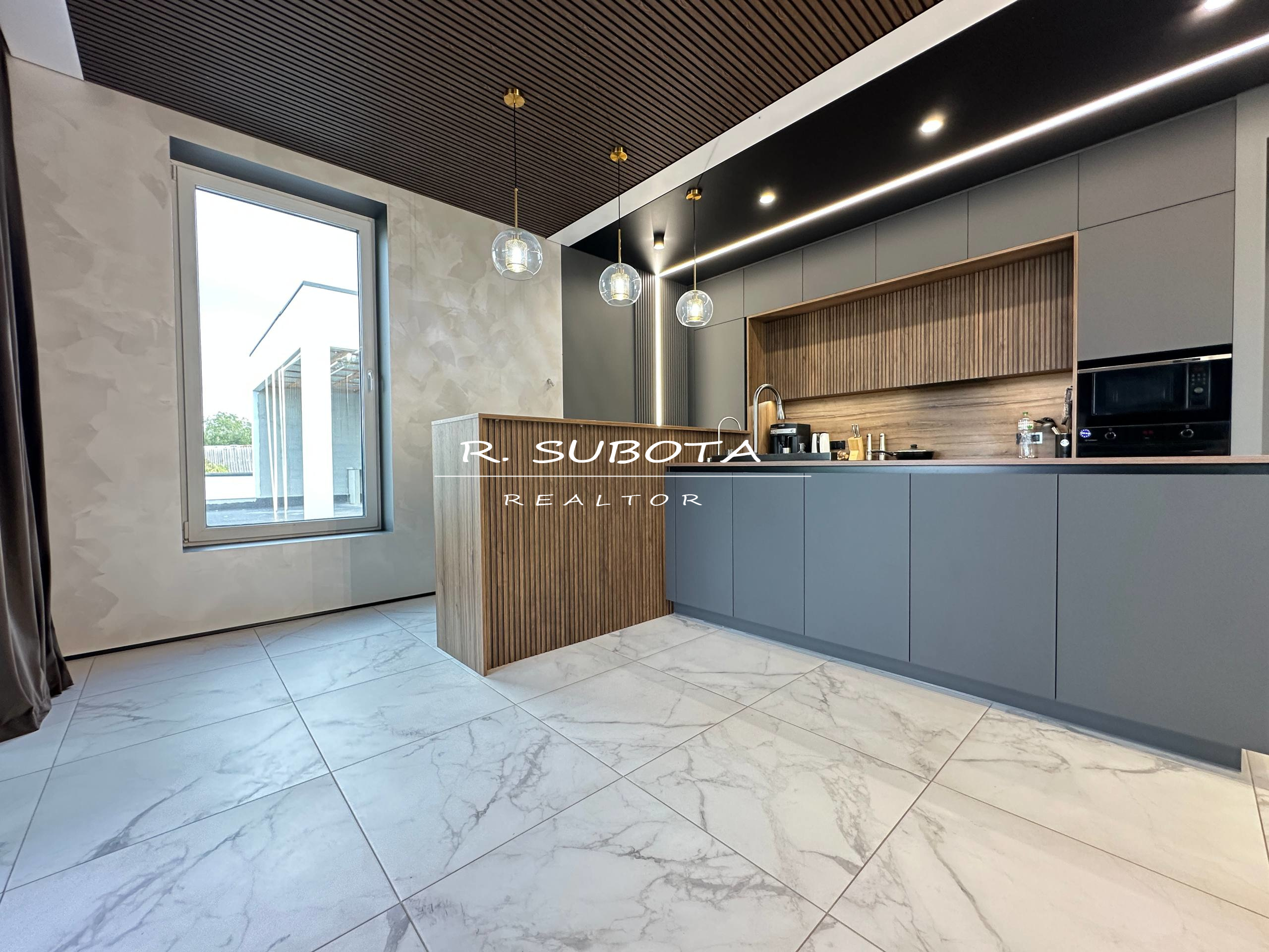 2 этаж – кухня-гостиная с панорамными окнами, выход на террасу, мастер-спальня с большой ванной.