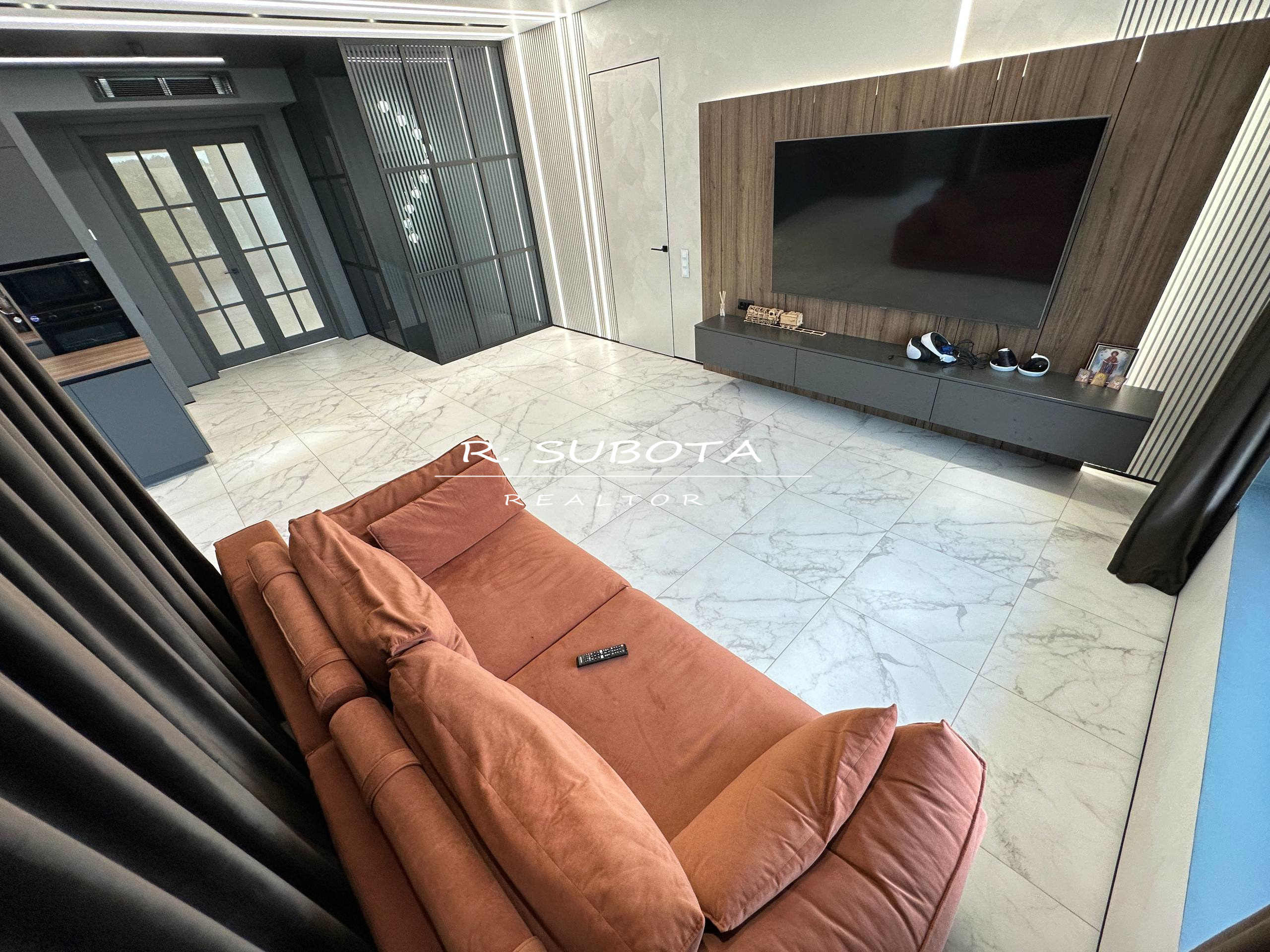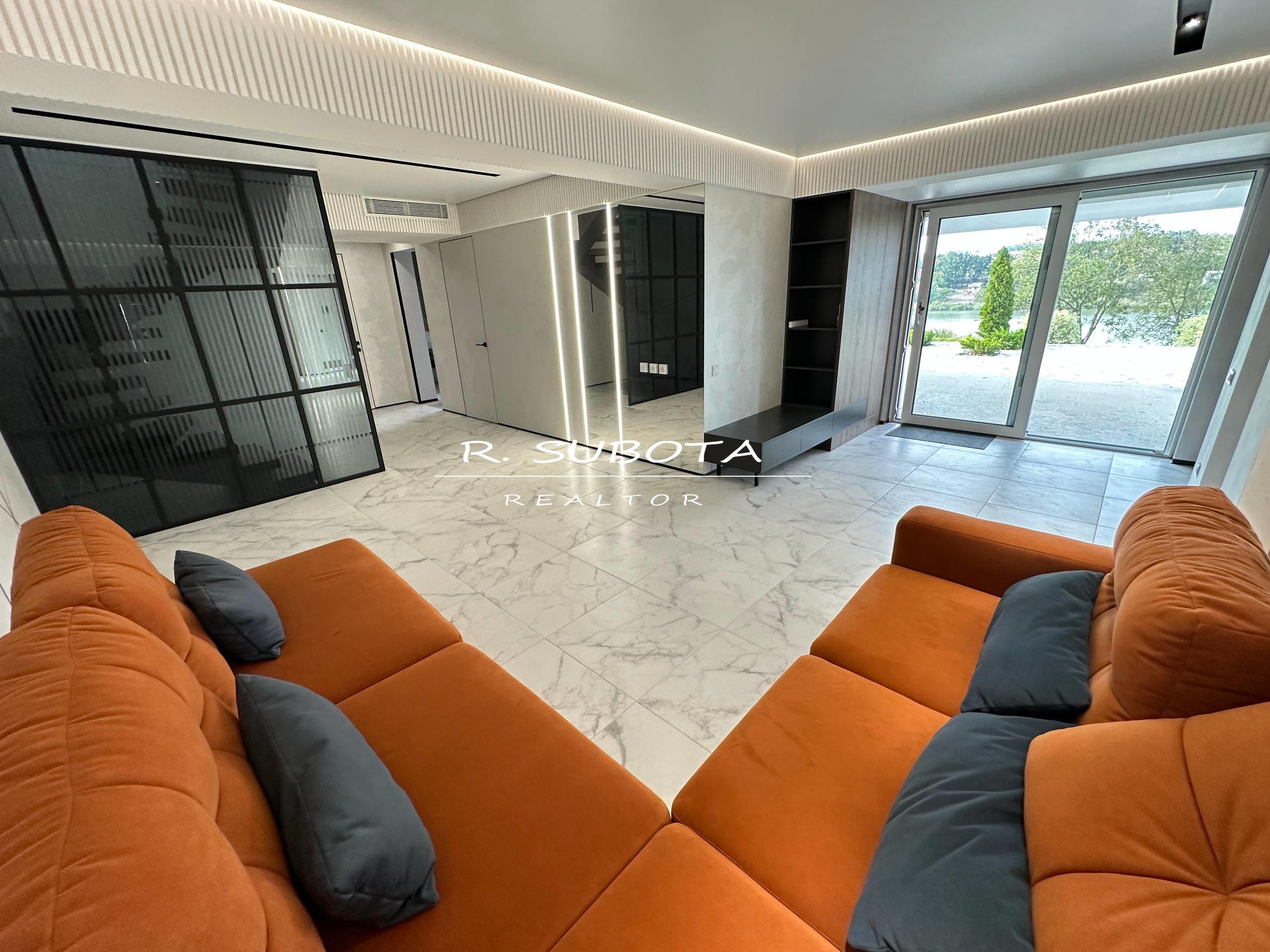 1 этаж – гостиная, 2 спальни, комната отдыха с баром и бильярдом, спортзал с видом на бассейн и реку.
