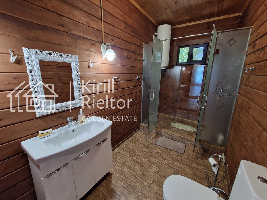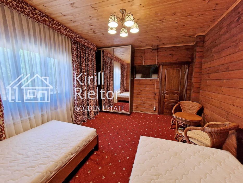 Жилой дом распланирован под три спальные комнаты (всего 6 спальных мест), гостиную с панорамными окнами, санузел и прихожую
