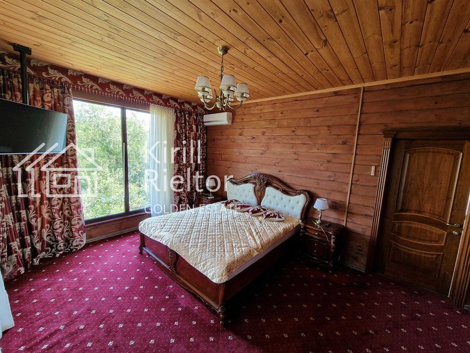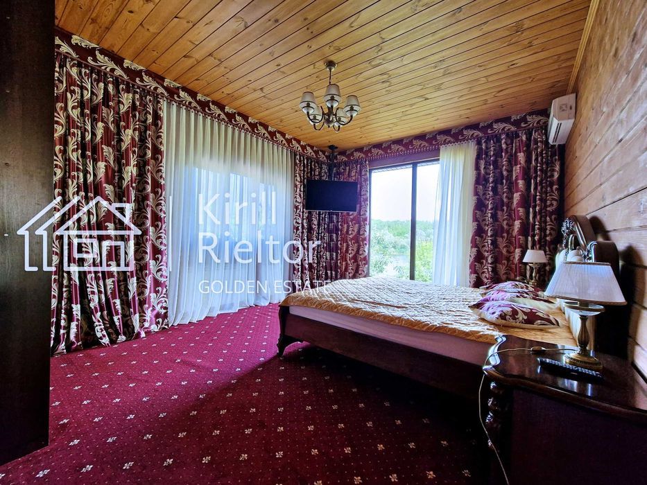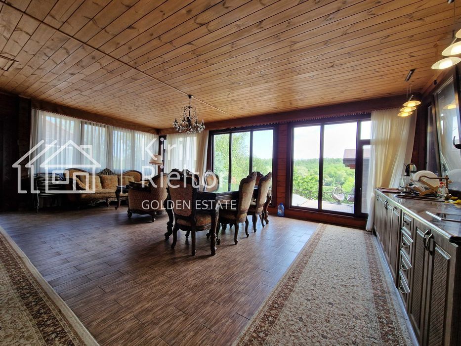 Летняя кухня (отдельное помещение) с панорамными окнами на реку Днепр и бассейн оборудована двумя холодильниками, бойлером, электроплитой и посудомоечной машиной. Есть телевизор SMART-TV