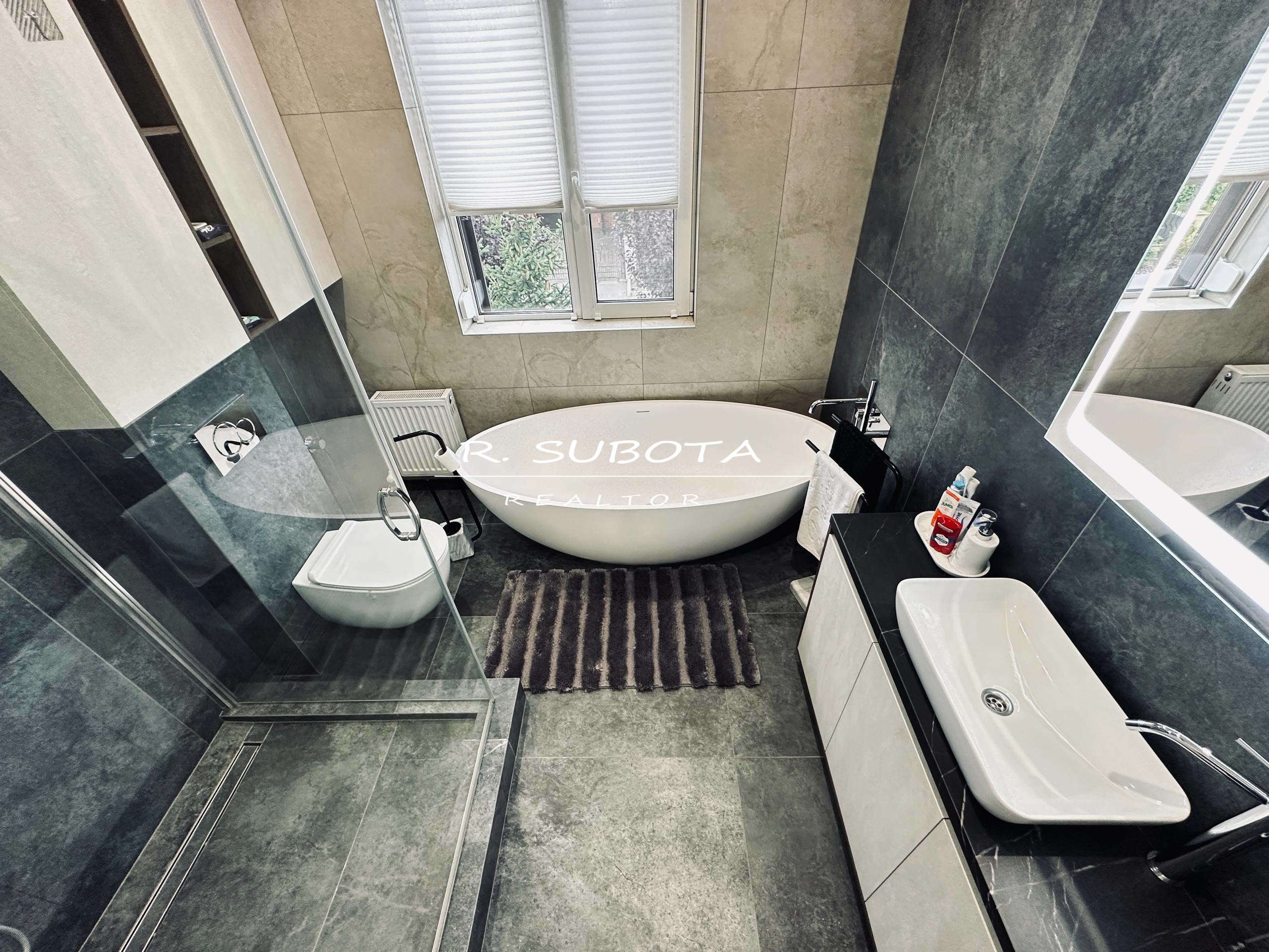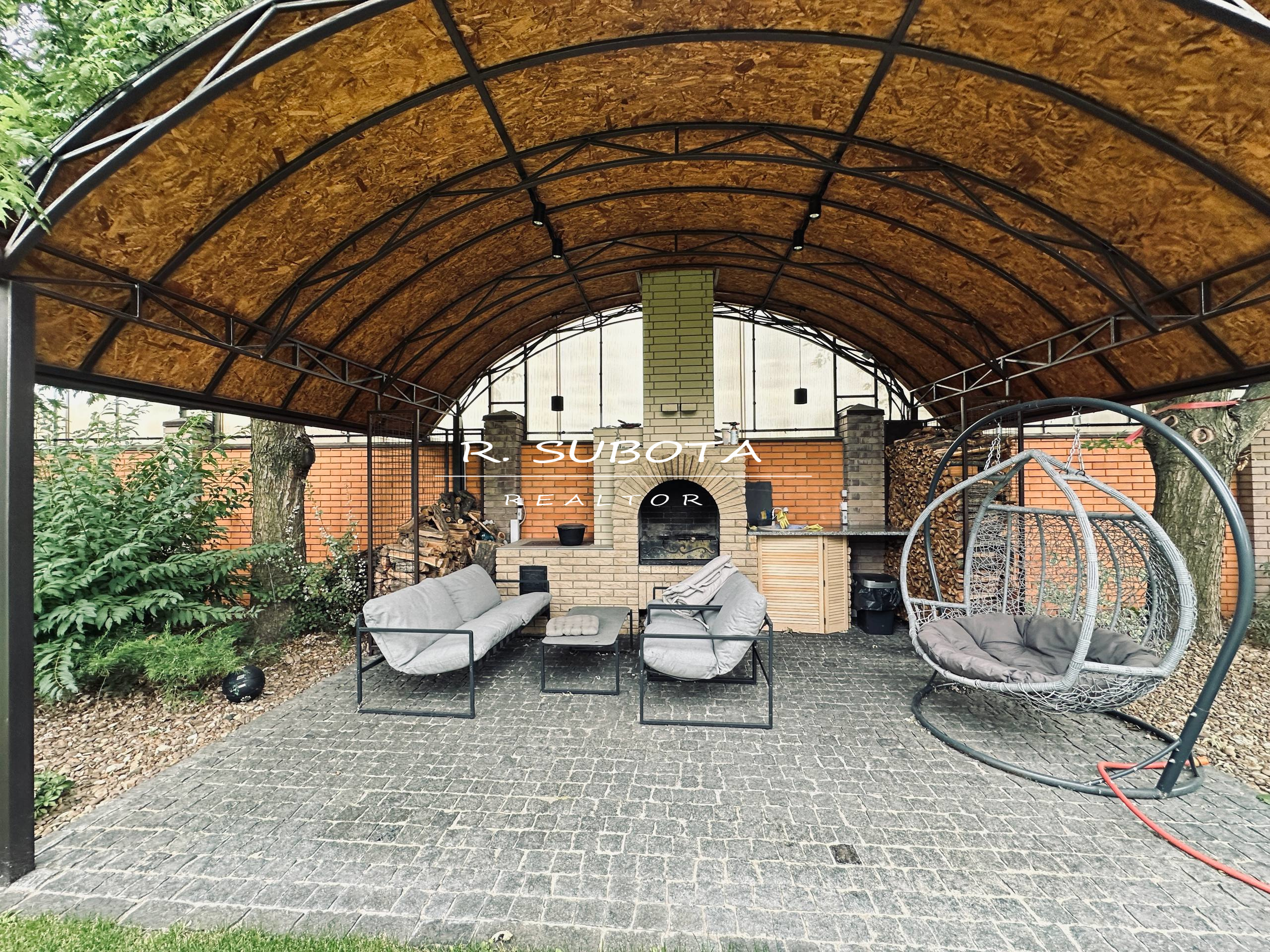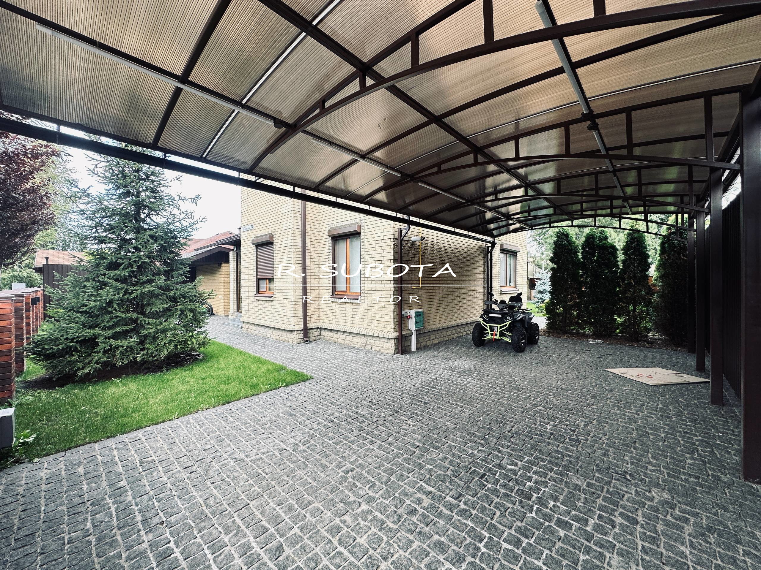 Дом оснащён всем необходимым: мощная электросеть (15 кВт), зарядная станция для авто, навес на два автомобиля, отапливаемый вольер для собак, генератор и инвертор. Отдельный блок для хранения инвентаря и техники.