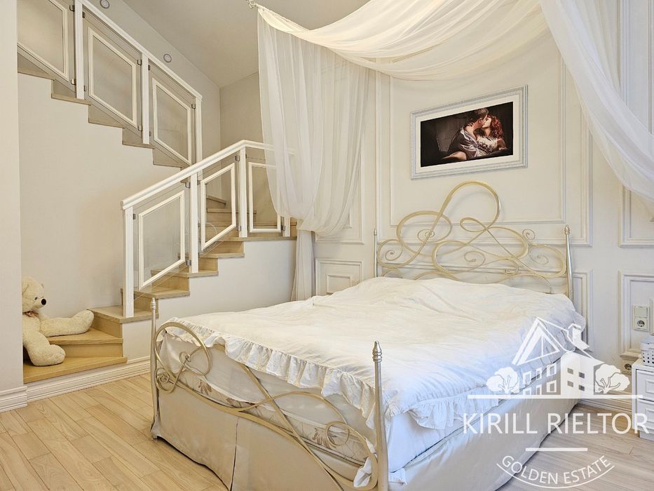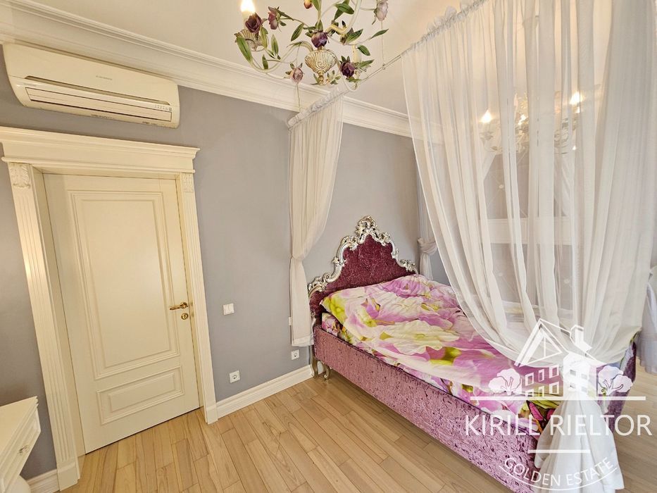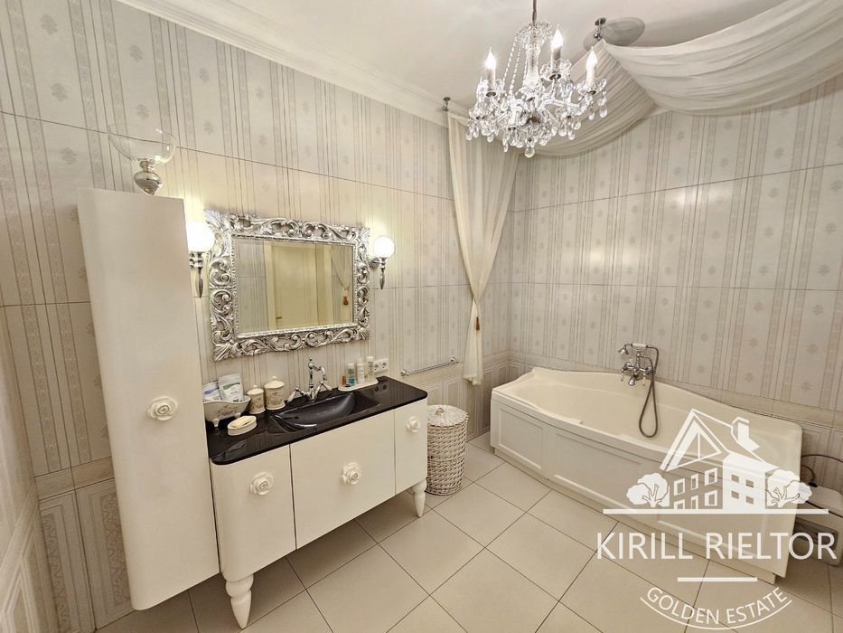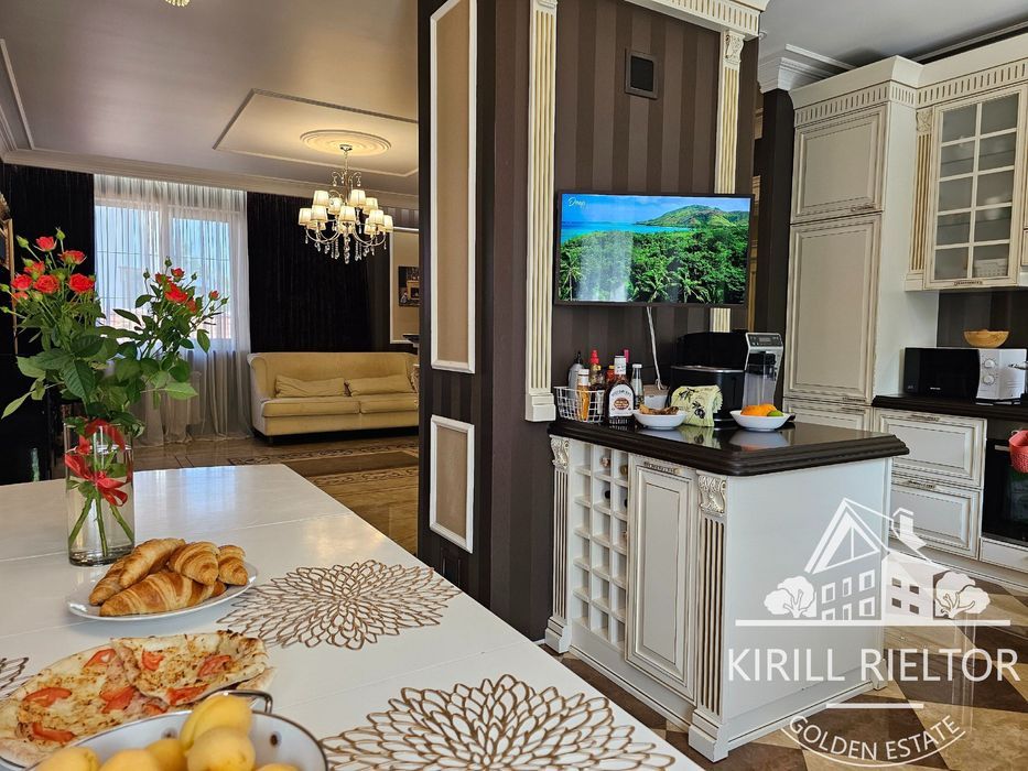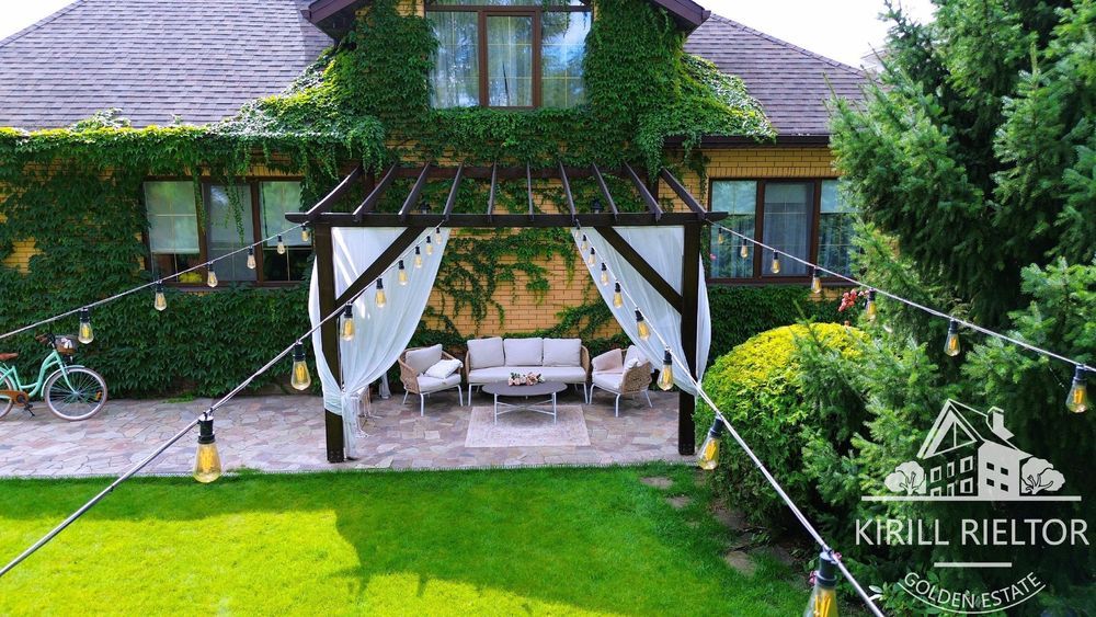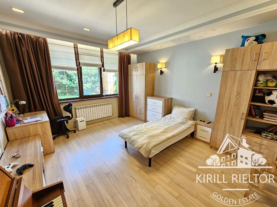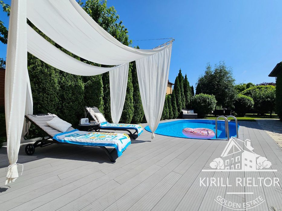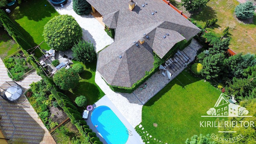 В стоимость входит уборка внутри дома 1 раз в неделю, чистка бассейна, уход за озеленением. Планировка: кухня-столовая и гостиная с камином, два с/у, три спальни, гардеробная, кабинет. Также есть гараж на два автомобиля и котельная. Бассейн оборудован электрическим подогревом.